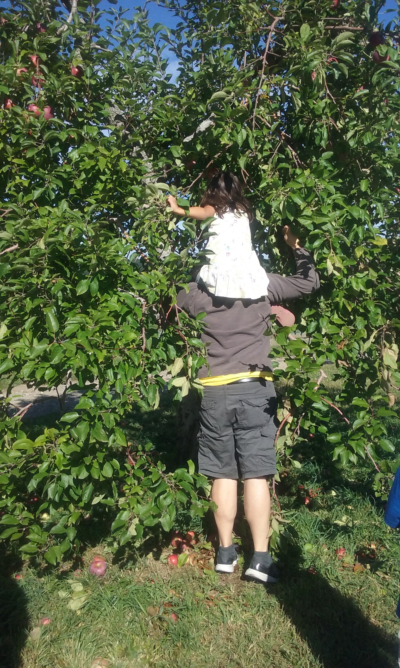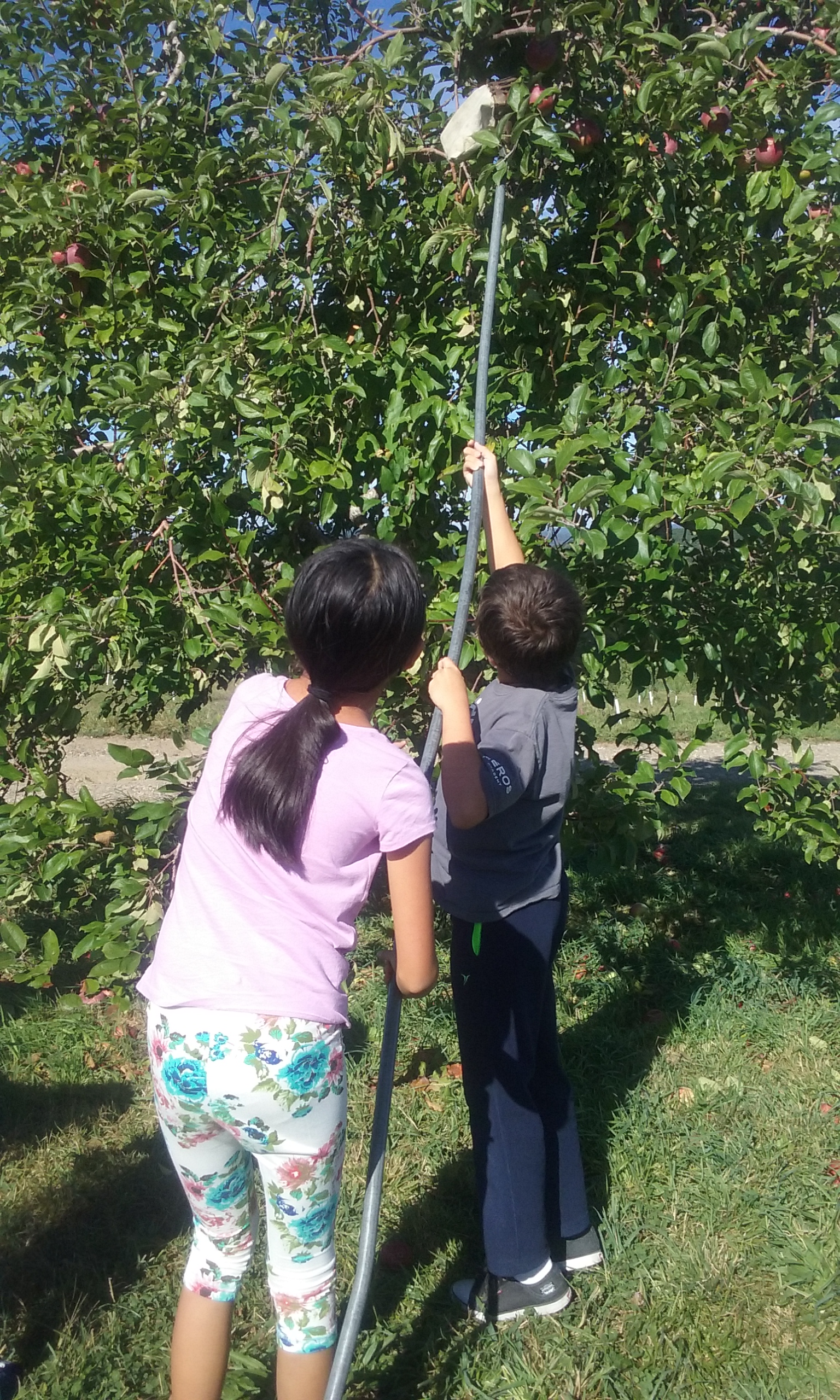 The kids took turns wielding apple picking poles or looking for low-hanging fruit in search of the most beautiful apple in the orchard. There was a lot of good-natured apple trash-talking before this one won by virtue of showing up with its own crown.